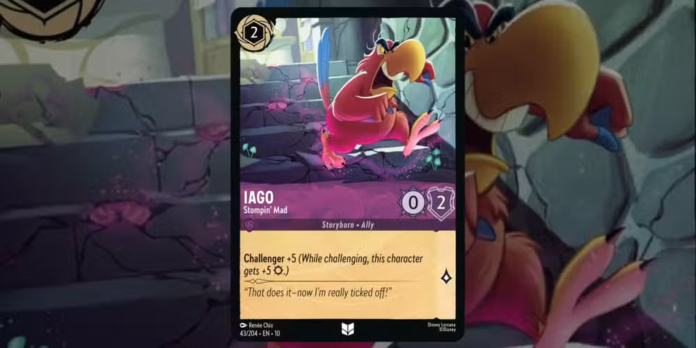 A primera vista, “Iago – Stompin’ Mad” puede no parecer tan impresionante. Es una carta barata, que cuesta solo dos tintas para jugar y solo misiones para una historia. Con dos defensas, también puede ser derribado bastante rápido, pero La clave aquí es lo que puede hacer antes de ser desterrado..