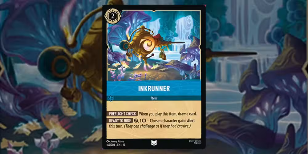 La tinta de zafiro generalmente es rica en artículos, pero este podría ser uno de los mejores. El jugador no sólo puede robar una carta cuando juega Inkrunner, sino que Con solo una tinta, el objeto puede darle al personaje elegido la capacidad de desafiar Evasivo. oponentes. Si la habilidad Evasiva no es necesaria, esta también es una pequeña y bonita carta que se puede entintar para guardar en el mazo.