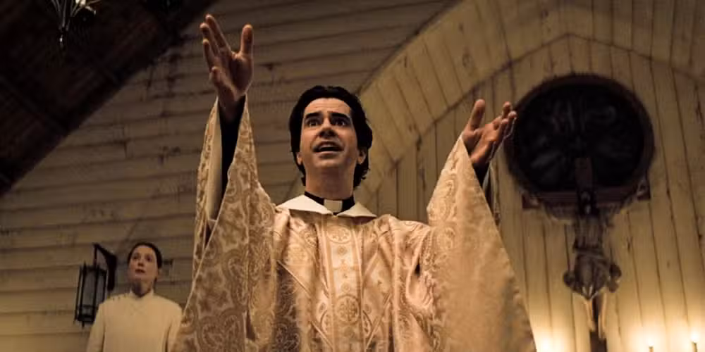 Misa del gallo no se basa únicamente en su premisa, entorno y tema de alta calidad. Su protagonista, Riley Flynn (Zach Gilfrod), es un personaje lleno de matices con una rica historia de fondo, todo lo cual se une para informar cómo se involucra en los eventos venideros. Mientras tanto, Hamish Linklater ofrece una actuación impresionante llena de carisma persuasivo como el misterioso nuevo sacerdote de la ciudad.