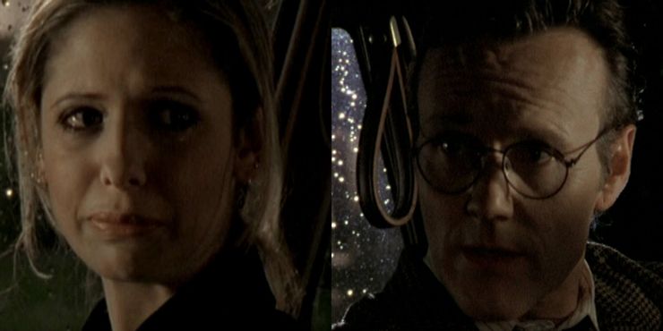 Si bien el padre biológico de Buffy aparece ocasionalmente en el programa, se reconoce que Giles es realmente su figura paterna, y es excelente. En una escena, el alcalde también reconoce que Giles es el ‘papá’ de Buffy, diciendo que “Esa es una niña valiente que has criado … Me la voy a comer”. Giles responde a esto apuñalando al alcalde con una espada, un momento asombroso (aunque inútil) que calienta el corazón.