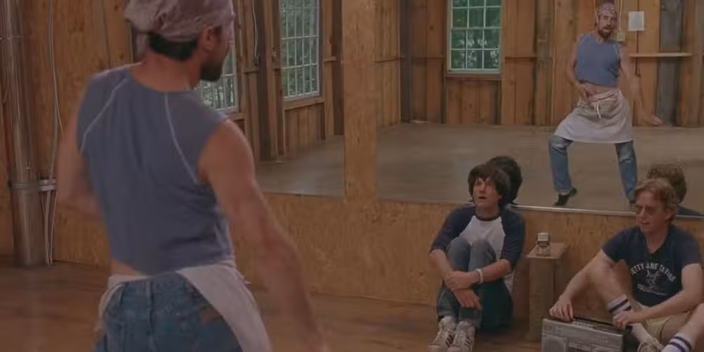 Verano americano caliente y húmedoLas citas y los chistes son icónicos, y es una pena que tanto la película como el programa de televisión no sean más apreciados. Uno de los momentos más divertidos de la película original es cuando Gene (Christopher Meloni) toma bajo su protección a Coop (Michael Showalter), desconsolado. y lo empuja a un régimen de entrenamiento para ayudarlo a recuperar a Katy (Marguerite Moreau).