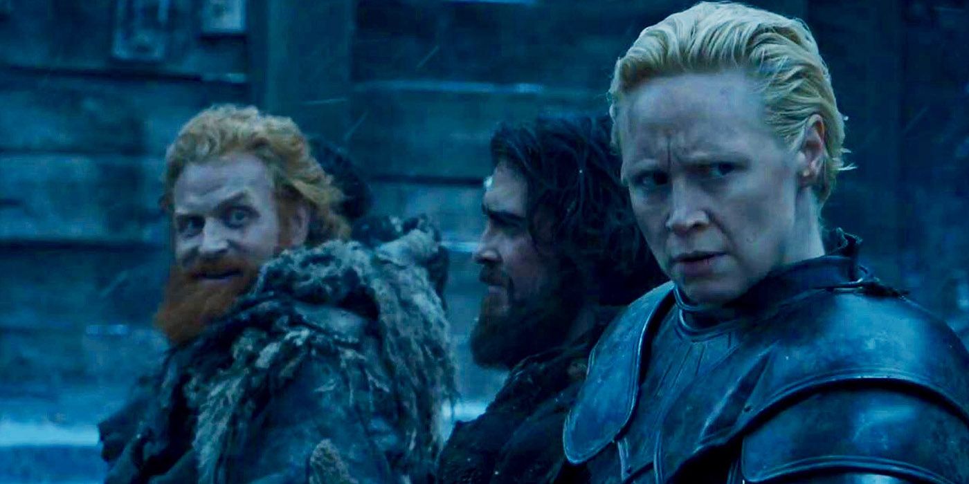 “/> Cuando abandonan Castle Black para ayudar a Jon Snow (Kit Harrington) y Sansa Stark (Sophie Turner) a retomar Winterfell, Tormund Giantsbane (Kristofer Hivju) mira y sonríe a Brienne of Tarth (Gwendoline Christie). El momento no tuvo ningún guión, pero a David Benioff y Dan Weiss inmediatamente les encantó y lo mantuvieron en el programa (a través de Semanal de entretenimiento). Los intentos de Tormund de conectarse con Brienne se convierten en un chiste constante hasta que Game of Thrones temporada 8 cuando Tormund acepta que Brienne no está interesada y sigue adelante.