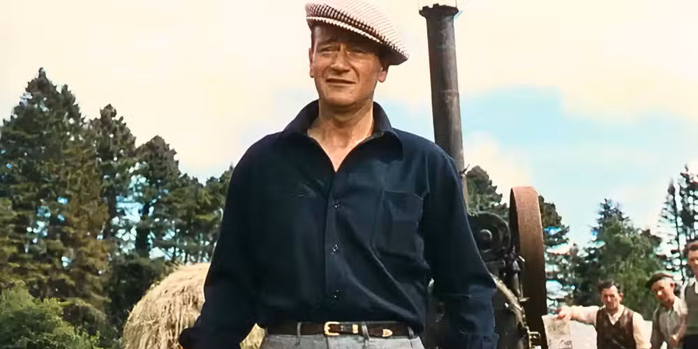 El hombre tranquilo es una salida de los westerns tanto para Wayne como para Ford, en la que el boxeador retirado del primero se dirige a Irlanda. La película es un drama que enfatiza el romance que se está gestando entre Sean de Wayne y Mary de Maureen O’Hara, pero es mejor recordada por su pelea épica en el acto final.