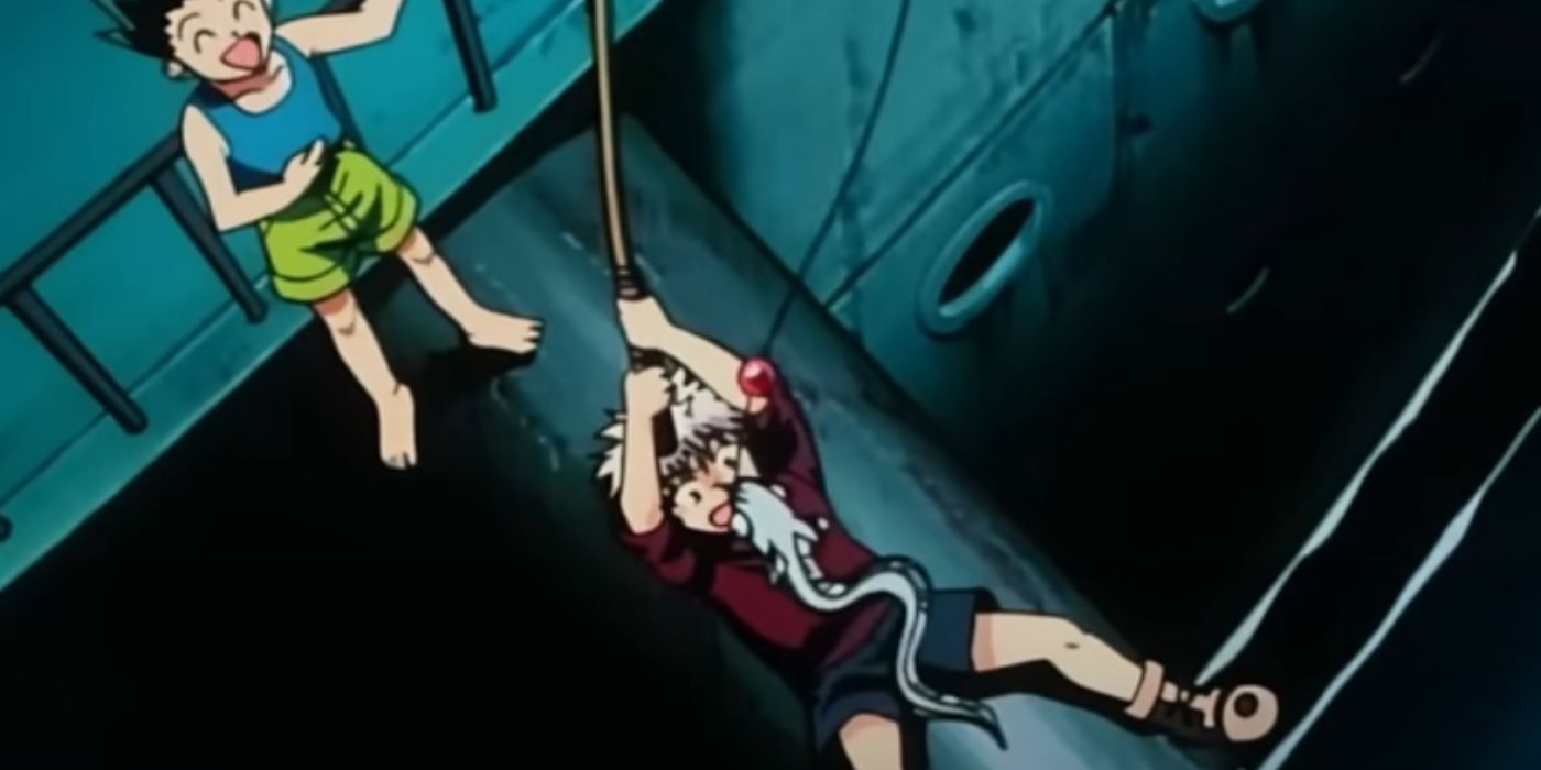 Durante el arco del buque de guerra abandonado, Gon le enseña a Killua a pescar. Lo que hace que esta escena en particular sea divertida es en realidad la respuesta de Killua a varios de los componentes esenciales de la pesca. A pesar de ser un asesino entrenado desde su nacimiento, Killua se desanima ante la idea de cebar su propio anzuelo de pesca. Esto es especialmente irónico considerando que poco antes de esta escena, le había arrancado el corazón a un asesino en serie. La escena continúa mientras Gon le instruye sobre cómo pescar un pez, lo que lleva a momentos más cómicos, como la respuesta de disgusto de Killua al pescado que pesca y, finalmente, su inquietud por los ojos del pescado cocido. La última pregunta interna de Gon: “¿Eras realmente un asesino profesional, Killua?” Resume perfectamente el humor general de la situación.