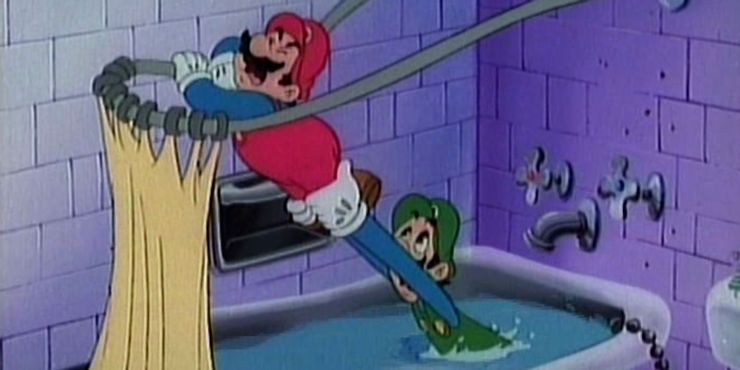 En el Súper show, sin embargo, la introducción del programa y el primer episodio establecen inmediatamente a Mario y Luigi como fontaneros, y explican sus excursiones al reino de los hongos como un caprichoso accidente en su línea de trabajo. La sola idea de que Mario está en el reino de los hongos debido a un percance relacionado con la plomería que involucró a los dos hermanos cayendo en una tubería mágica es bastante absurdo y bastante divertido de ver en la pantalla.