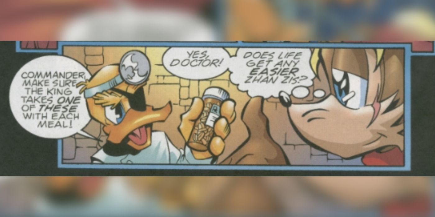 La idea de negarle medicamentos a un anciano enfermo para lastimarlo es absolutamente deplorable, especialmente cuando el hecho hace que la víctima entre en coma. Esto es lo que le sucede al rey Maximiliano en Archie’s Sonic #156. Además, la historia da la falsa impresión de que el perpetrador de este crimen despreciable es el héroe cobarde de toda la vida Antoine, quien ha estado en la serie desde el primer día. Después de 155 números, esta es una traición impactante. Por supuesto, pronto se descubre que el gemelo malvado de Antoine del universo al revés de Sonic es el que mueve los hilos, pero eso aún no niega la cobardía de todo el desagradable acto. Aunque no es cierto, el verdadero Antoine tendría motivos para poner al rey Maximiliano en coma, y eso es lo que hace que su encuadre sea tan perfecto.