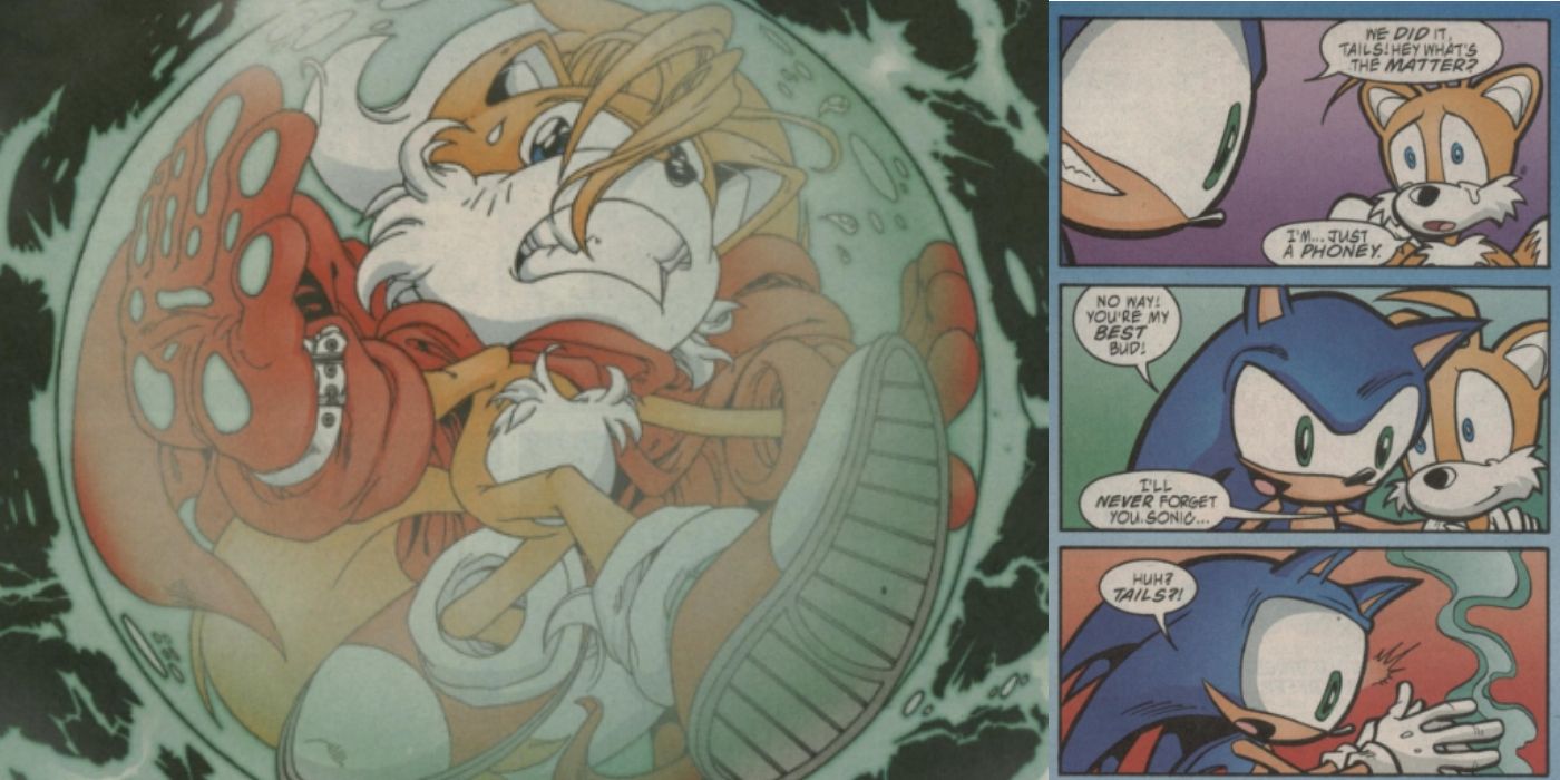 Probablemente uno de los actos más oscuros jamás perpetrados por cualquier villano es cuando Mammoth Mogul captura y mantiene a Tails en un sueño profundo durante 10 números para extraerle energía poderosa. El hecho de que Mogul obligue a su prisionero a mantener su forma Turbo Tails durante este tiempo agrega otro factor desordenado a toda la prueba a pesar de que Tails está inconsciente en todo momento. Además, Mogul también victimiza a otro personaje en el proceso. Él crea un clon falso de Tails para vivir con Sonic para que nadie pueda sospechar que el zorro de dos colas no está, y el impostor lucha mucho. Lo triste es que esta copia de Tails piensa que él es el verdadero todo el tiempo. Esto lleva a una realización muy inquietante para la pobre alma que hace que llore a Sonic cuando se entera de la verdad antes de desaparecer para siempre.