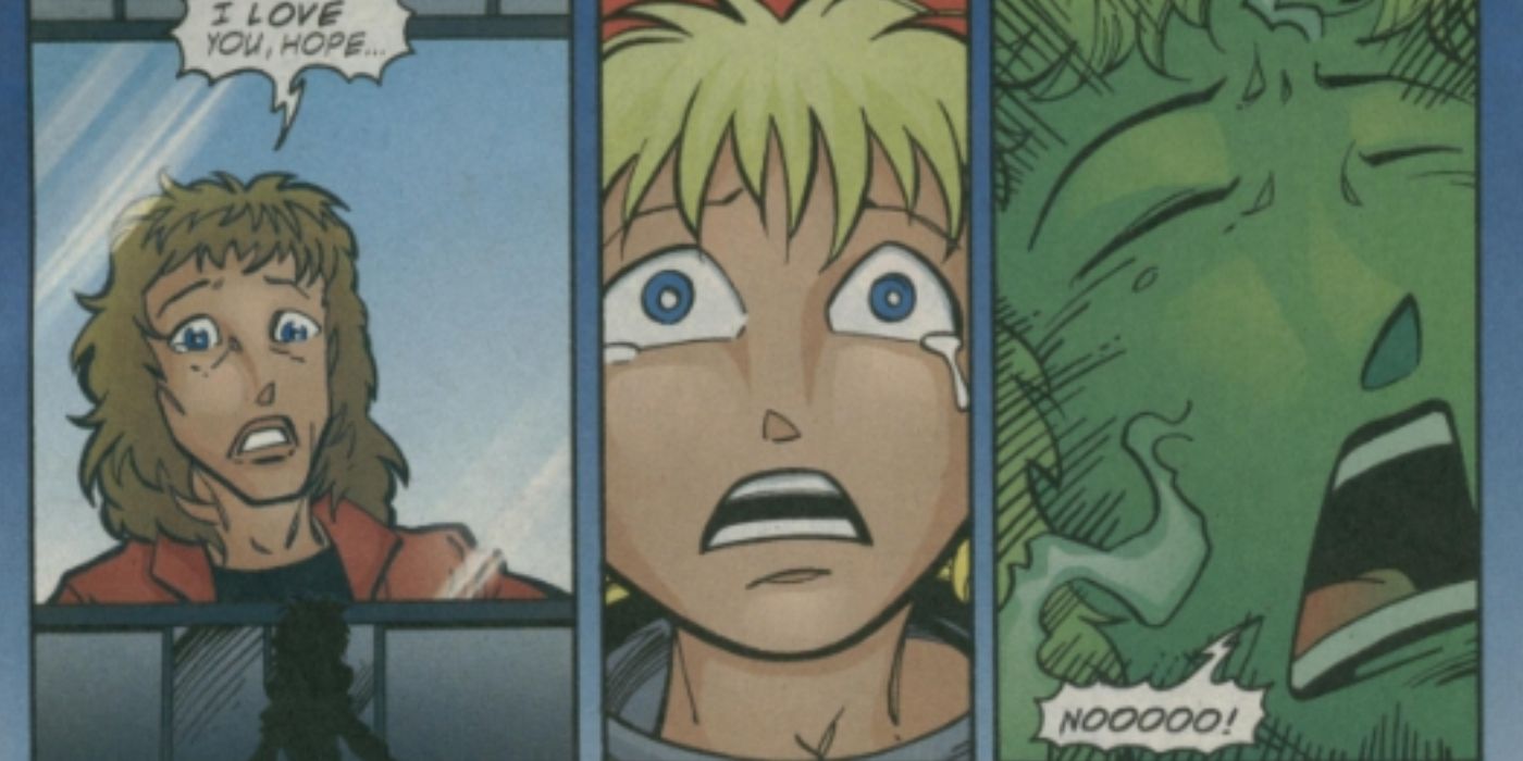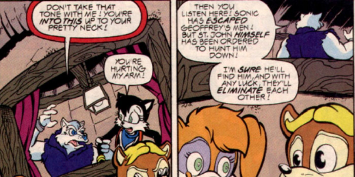 esta escena en Sonic El #48 podría haber empeorado mucho más de lo que está, pero sigue siendo malo considerando las circunstancias. Se supone que el traidor Drago, que enmarca la muerte de Sally en su novio Sonic en el mismo arco, “solo” agarra violentamente el brazo de su novia Hershey. Pero lo hace con ira mientras adopta una postura amenazante que podría interpretarse fácilmente como si él se preparara para golpearla. El hecho de que Hershey diga que la está lastimando empeora la situación considerablemente. Incluso existe la posibilidad de que sucedan más, ya que los lectores están restringidos a lo que pueden ver Bunnie Rabbot y Antoine, quienes ya están limitados por el hecho de que se concentran en permanecer ocultos. ¿Y quién puede decir que esta es la única vez que Drago exhibe violencia? Es por eso que esta escena es la escena más oscura en Sonic el erizo.