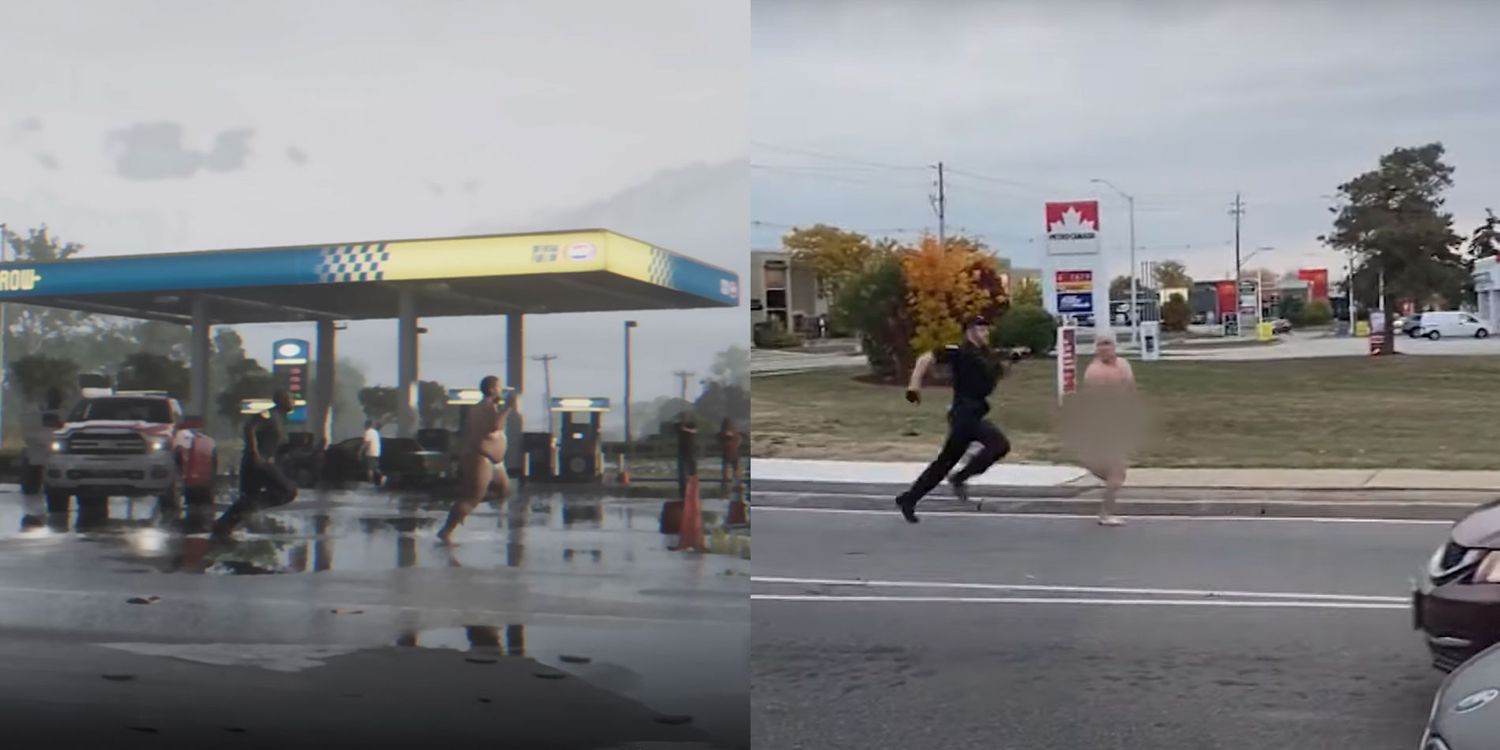 “/> El hombre desnudo que huye de la policía se parece más a un incidente de 2022 que ocurrió en Oakville, Ontario, Canadá, cuando la Policía Regional de Halton atropelló a un hombre que corría por la calle completamente desnudo. Captado en un video publicado por CHCH News en YouTube, el parecido con el suceso es asombroso. Si bien se pueden encontrar pequeños detalles sobre el incidente, el clip en el GTA 6 El tráiler también podría apuntar a un momento más grave ocurrido en 2022 en DeLand, Florida.