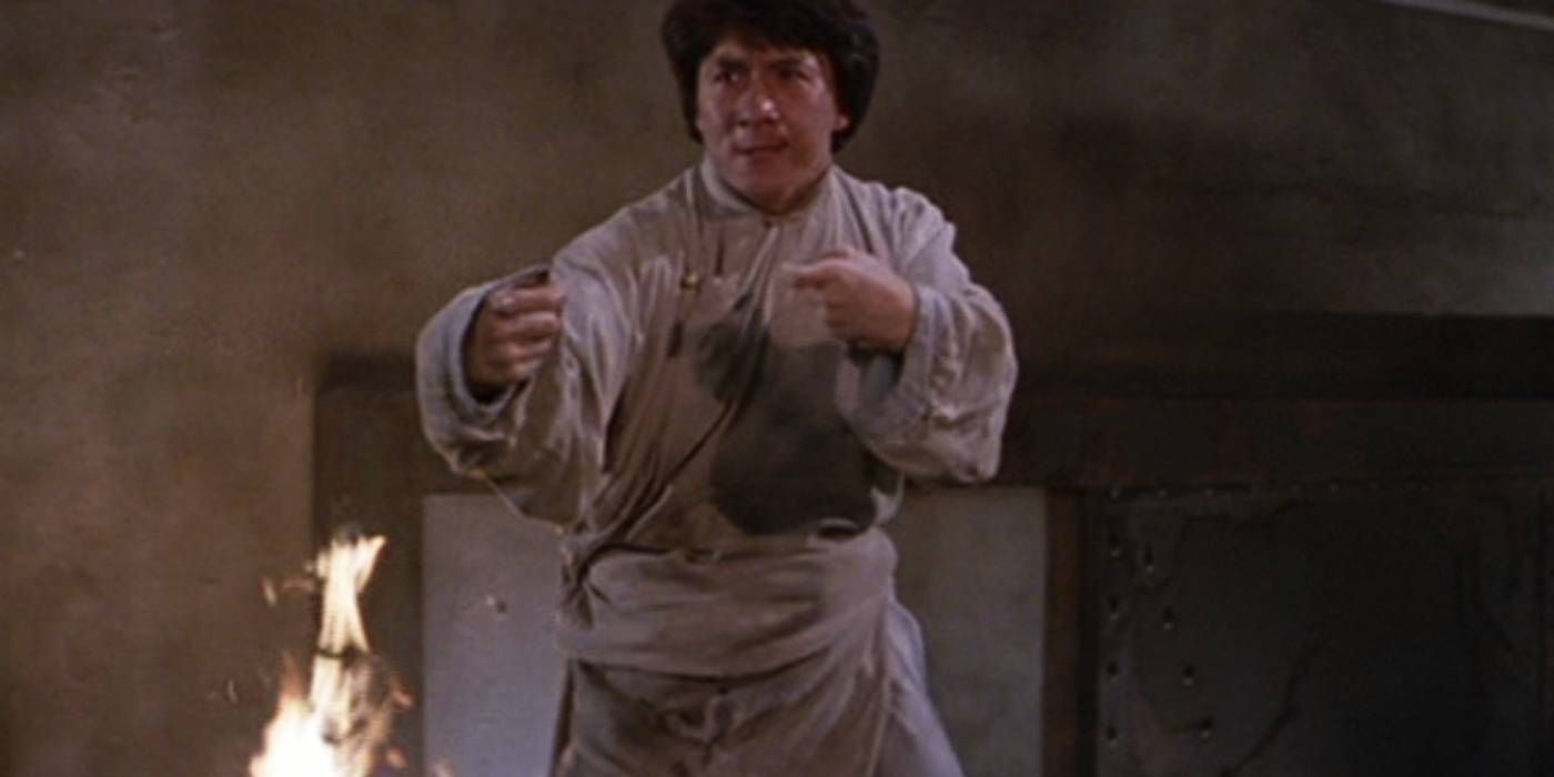 “/> En El maestro borracho II (también conocido como La leyenda del maestro borracho), Jackie Chan retoma su papel del original de 1978 como el verdadero artista marcial y héroe popular chino Wong Fei-hung. Durante la dramática pelea final de la película, se enfrenta a una secuencia de pelea agotadora y complicada que culmina cuando levanta a su oponente por encima de su cabeza. Luego arroja al hombre detrás de él sobre una caja de madera, que se derrumba. No es el movimiento final más elegante, pero ciertamente es un testimonio satisfactorio de la habilidad de Jackie Chan.