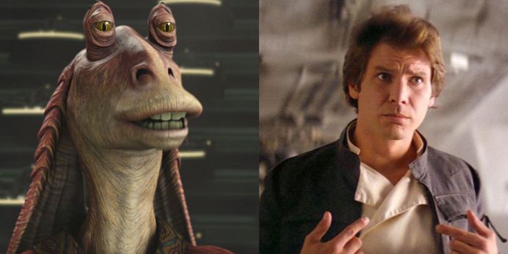 Jar Jar Binks, quien es personalmente responsable de una gran parte de las quejas de los fanáticos con la trilogía de la precuela, desaparece del canon después de Venganza de los Sith, haciendo que cualquier reunión posible con el personaje favorito de los fans, Han Solo, sea casi imposible. Al volverse activos en épocas completamente separadas de la franquicia, estos dos personajes aparentemente no tienen motivos para encontrarse.