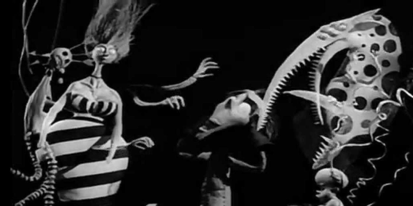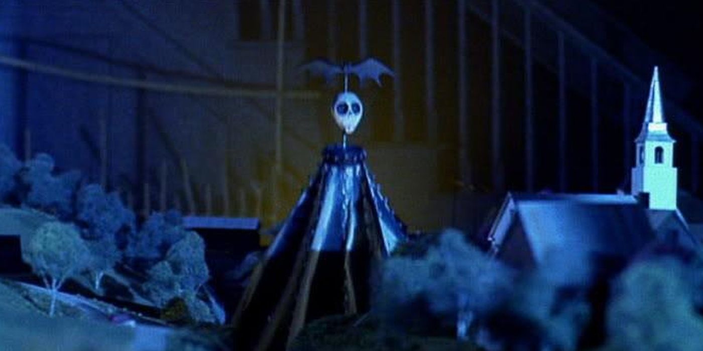 Uno de estos espantosos demonios que aparecen en el paisaje onírico del niño tiene un parecido sorprendente con el Rey Calabaza. Visto con el fantasma de una esposa muerta y una versión zombificada del perro de Vincent, se puede ver una figura esquelética en el lado izquierdo de la toma, lista para aterrorizar al asustado aspirante a Vincent Price.