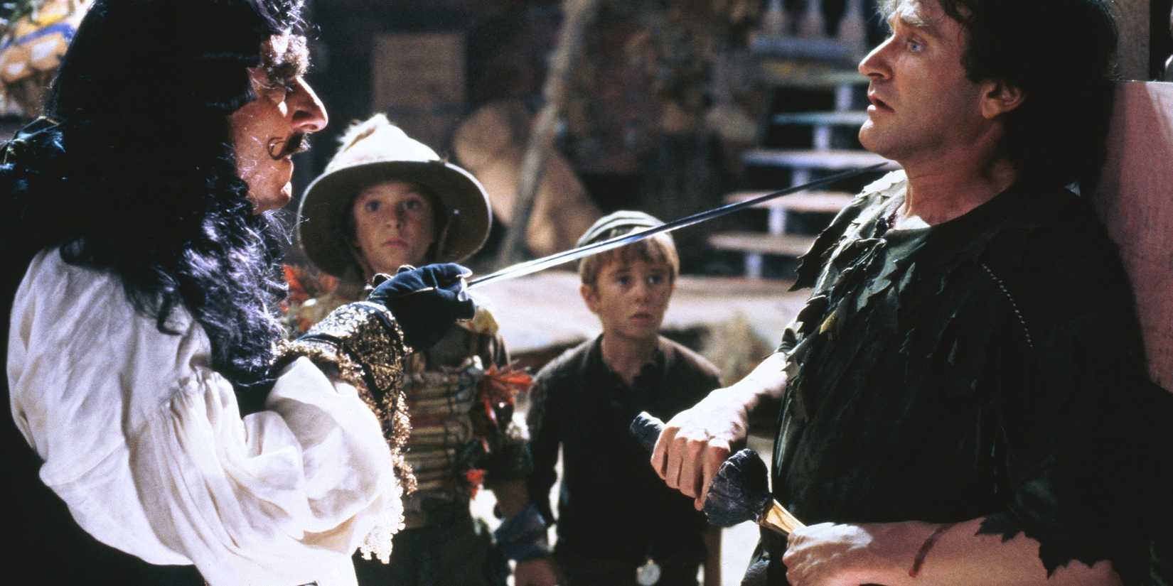 Ambientada en la época actual y actuando como una secuela de la película de JM Barrie. Peter y Wendy, Gancho En esta película, una versión adulta de Peter Pan, a la que se hace referencia como Peter Banning, regresa a Nunca Jamás para salvar a sus hijos secuestrados del antagonista titular. El diseño de producción del entorno ficticio es llamativo y las actuaciones de Robin Williams y Dustin Hoffman como Peter y el Capitán Garfio, respectivamente, resaltan lo mejor de las habilidades de los actores. Estos elementos y la nostalgia general de la película han hecho que Gancho Un éxito de público.