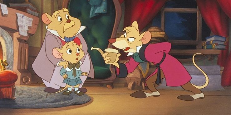 El gran detective del ratón, lanzado en 1986, sirve como una adaptación animada de la serie infantil Albahaca de Baker Street. La premisa de la serie era novedosa, centrándose en ratones que vivían en 221B junto a Sherlock Holmes y resolvían crímenes en la misma línea que el gran detective.