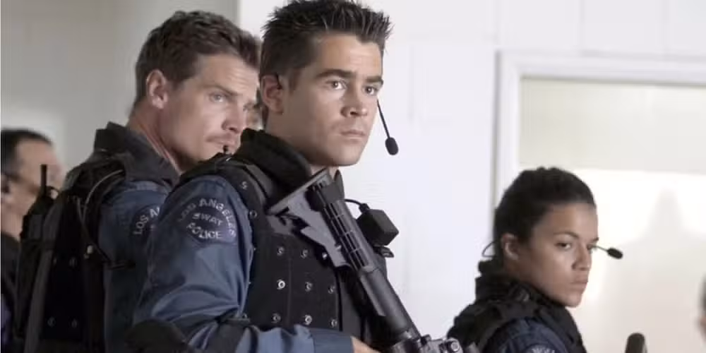 La versión cinematográfica de APLASTAR Destaca inmediatamente por su fuerte reparto. Colin Farrell, Michelle Rodríguez, LL Cool J y Samuel L. Jackson lideran un equipo SWAT en Los Ángeles encargado de escoltar a un fugitivo internacional después de que ofrece 100 millones de dólares a cualquiera que lo ayude a escapar.