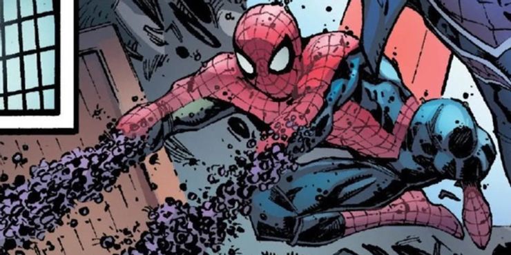 Spiders-Man es otra variante del personaje original, pero lo interesante de Spiders-Man es que está hecho literalmente de miles de arañas. En los cómics, Peter fue devorado por toda una colonia de arañas, pero las arañas consumieron la conciencia del personaje.