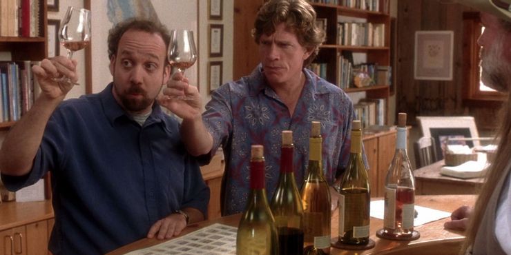 Solo las descripciones proporcionadas por el personaje de Paul Giamatti, Miles, de los aromas y sabores detrás de los tintos y blancos que tanto disfruta son suficientes para encender de repente las ansias de cualquier amante del vino. Se advierte a los espectadores que se están sirviendo una buena copa de vino mientras miran que disfruten de manera responsable.