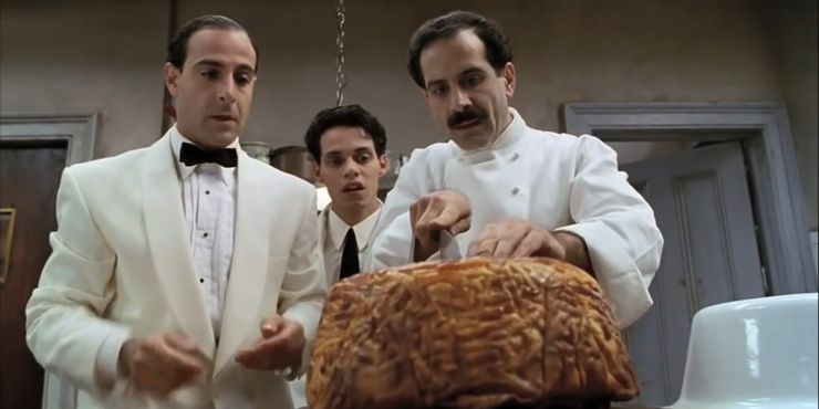La escena de la cena por sí sola hace que valga la pena sentarse, ya que el aspecto deslumbrante de la comida y las reacciones eufóricas de los invitados sin duda dejarán a los espectadores con una rabia de celos. Para cuando el timbal salga de la cocina y se divida entre los invitados a la cena, sus mandíbulas se quedarán boquiabiertas ante la majestuosidad de la creación de los hermanos.