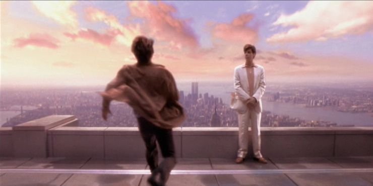El personaje de David Aames está consumido por el miedo tanto como por la vanidad. Parte de este miedo viene en forma de acrofobia (el coche que conducía su amante se cayó de un puente). Y al final de la narración, literalmente debe dar un “acto de fe” desde un rascacielos.