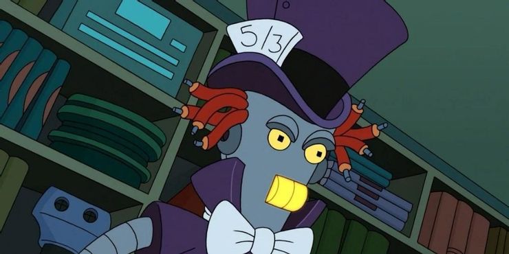 El Mad Hatter Robot, a veces también llamado Mad Hatterbot, fue el gran éxito del episodio ‘Insane in the Mainframe’, así como de la película. juego de doblador. Mad Hatterbot es un recluso en el Instituto Hal para Robots Criminales Insanos.