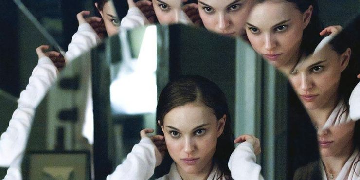 Un motivo visual importante que Aronofsky utiliza para indicar la naturaleza dual de Nina es el uso de espejos y otras superficies reflectantes en la película. Por ejemplo, a veces Nina verá una cara distinta a la suya (generalmente la de Lily) en un espejo y se asustará por las diferencias. Sin embargo, solo hay un escenario en la película que no tiene espejo: el escenario.