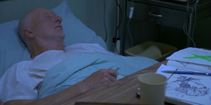 Durante esa escena temprana en el hospital cuando se ve a John Kramer en su cama de hospital, también hay algunos papeles en la cama con él. Si los fanáticos fueran lo suficientemente rápidos para echar un vistazo, habrían visto que estos son dibujos para el diseño de la trampa para osos invertida. Por qué un asesino en serie dejaría evidencia tan incriminatoria a la vista es otra pregunta completamente diferente.