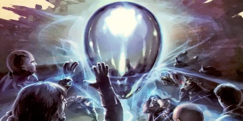 La alquimia Sith aún no ha aparecido en una película de acción real. Guerra de las Galaxias proyecto, pero ha aparecido indirectamente. Symeong Albrekh, el orfebre que repara el casco de Kylo Ren en Star Wars: El ascenso de SkywalkerTambién era practicante de la alquimia Sith. El diccionario visual de la película afirma que utilizó la alquimia mientras reformaba el casco, lo que posiblemente explica el tenue brillo rojo a lo largo de las grietas.