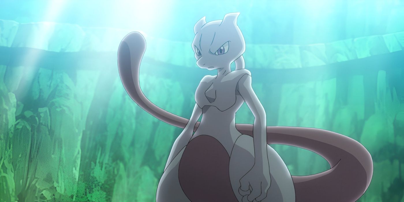 Mewtwo es un Pokémon de tipo psíquico que fue creado artificialmente utilizando el ADN de Mew. Veinte años antes de la historia principal, Giovanni del Equipo Rocket ordenó al Dr. Fuji clonar a Mew usando su pestaña y crear el Pokémon más poderoso que existe. Esto lleva al nacimiento de Mewtwo, quien trágicamente es almacenado en un tanque en New Island hasta que estalla y ataca a sus creadores. Además de su telequinesis y telepatía, tiene habilidades de regeneración que le permiten sobrevivir a lesiones que de otro modo serían fatales. Con sus poderes psíquicos destructivos y su odio hacia los humanos, Mewtwo demuestra ser un oponente formidable en la batalla. Sin embargo, lo que hace que el Pokémon sea realmente peligroso es su inteligencia humana, que le permite procesar ideas filosóficas complejas.