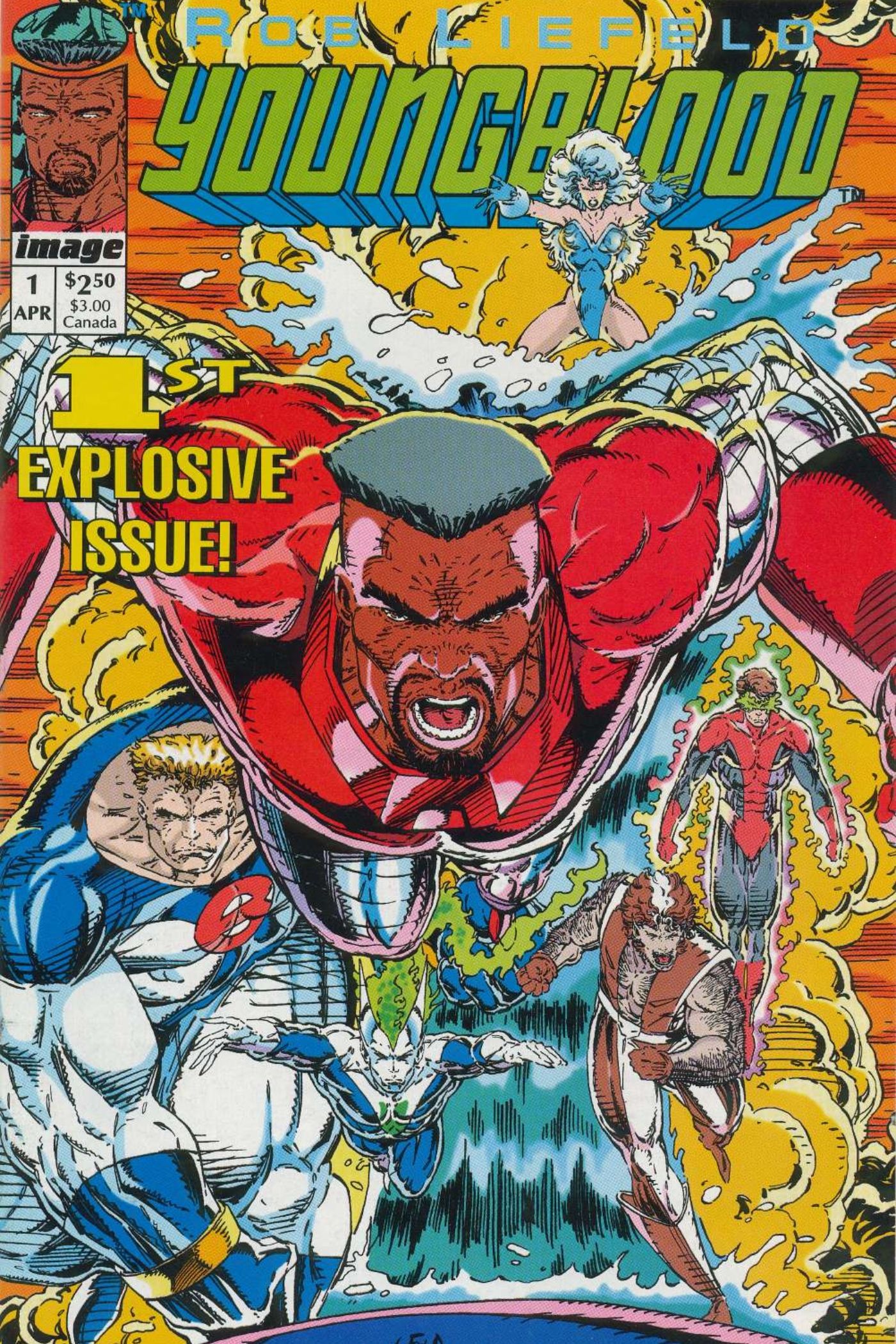 - Youngblood #1: El primer cómic publicado por Image Comics en 1992, la portada de este número es el clásico de Liefeld y surge con una estética explosiva y hardcore.