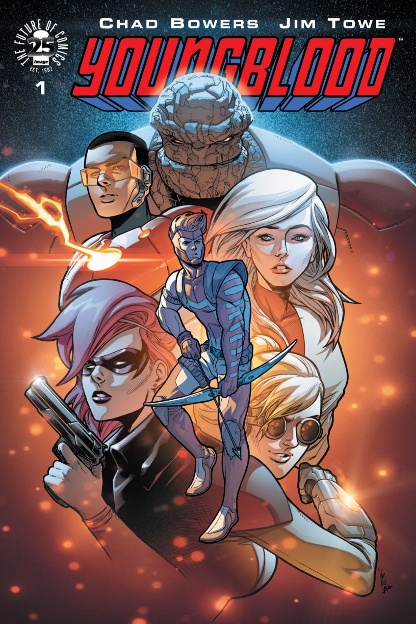 Honrar el pasado y al mismo tiempo prepararse para el futuro es la manera perfecta de marcar el comienzo de una nueva era para un libro tan icónico como Youngblood y la obra de arte de la portada de Sangre joven vol. 2 #1 lo hizo de manera experta.