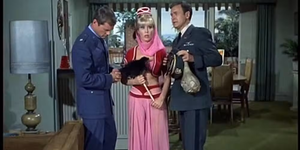 La premisa básica de Sueño con jeannie No sería aceptable en estos días. Una mujer está cautiva de un hombre cuyos deseos tiene que conceder, y luego se enamora de su captor. Funcionó durante ese período, pero ahora está desactualizado.