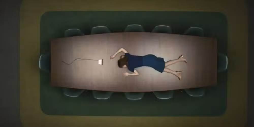 RupturaLa escena inicial es ciertamente minimalista. Pero precisamente por su enfoque de menos es más, dentro de los confines claustrofóbicos de una sala de reuniones corporativa, es una de las primeras escenas más fascinantes de cualquier programa de televisión en la historia.