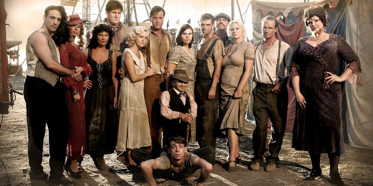 Una divertida obra de fantasía oscura, la serie sobrenatural de HBO Carnavalnoche recibió críticas favorables, pero los bajos índices de audiencia hicieron que HBO la cancelara solo en la segunda temporada. Ambientado en los Estados Unidos de la década de 1930, el programa trata sobre la vida de los miembros de un circo ambulante y cómo se ven envueltos en una batalla mística del bien y el mal. El drama de época incluía muchos elementos extraídos de la mitología cristiana y la tradición masónica, como el Día del Juicio Final y los Caballeros Templarios.