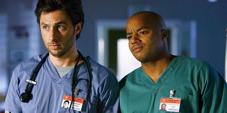 Y mucho como en Anatomía de Grey, JD Dorian de Zach Braff comienza como interno al comienzo de la serie mientras intenta aprender de los médicos que lo rodean mientras coquetea con el Dr. Elliot Reid (Sarah Chalke). Es un programa sobre un grupo disfuncional de trabajadores que parecen encontrar formas de hacer que las cosas funcionen, sin embargo, en la línea de La pandilla.