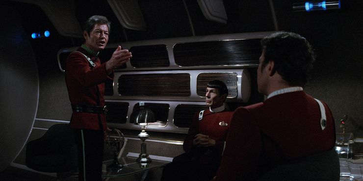 En Star Trek II: La ira de Khan, McCoy hace una referencia directa a la Biblia cuando es testigo del poder tecnológico del dispositivo Génesis. Su reproche llega rápidamente a los científicos que, en su opinión, estaban jugando a ser Dios, con consecuencias potencialmente desastrosas. Resulta que tenía razón.