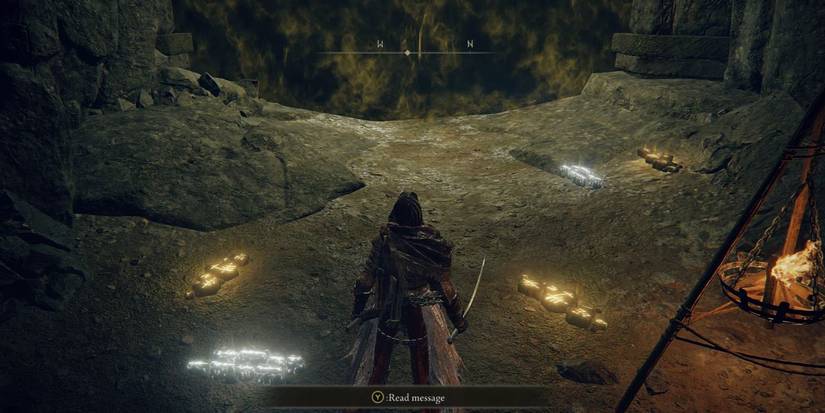 Explorar el área al suroeste de la Pintura del Dominio de los Dragones te llevará a una habitación con una pared ilusoria oculta entre dos antorchas. Interactuar con la pared revelará un camino que conduce por un tramo de escaleras hasta uno de Anillo EldenLos infames “teletransportadores de ataúdes”. Estos ataúdes se utilizan a menudo en las Tierras Intermedias para transportar a los Tarnished a nuevas áreas secretas a las que no se puede llegar por ningún otro medio.
