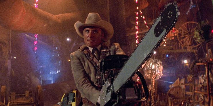 de tobe hooper La masacre de la motosierra de Tejas es un proto-slasher seminal, una película cruda y aterradora que, si bien es ligera en sangre, sabe exactamente cómo aprovechar los miedos de los espectadores. Dado que el original era un acto tan difícil de seguir, Hooper tomó una dirección muy diferente para la secuela: convertirlo en una comedia negra y marcar la locura.