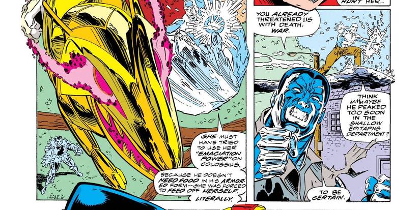 Por supuesto, la velocidad de curación de Colossus en su forma blindada no es rival para la de Wolverine, ya que tarda días en curarse de lesiones de las que Wolverine puede tardar unos momentos en recuperarse. Sin embargo, su tasa de curación supera con creces la de un humano estándar, y mientras permanezca en su forma blindada hasta que su carne se vuelva a unir, Colossus puede recuperarse completamente incluso de heridas graves. Esto podría explicar por qué Colossus permanece en su forma metálica durante ambos Dead pool películas, recuperándose de alguna pelea invisible.