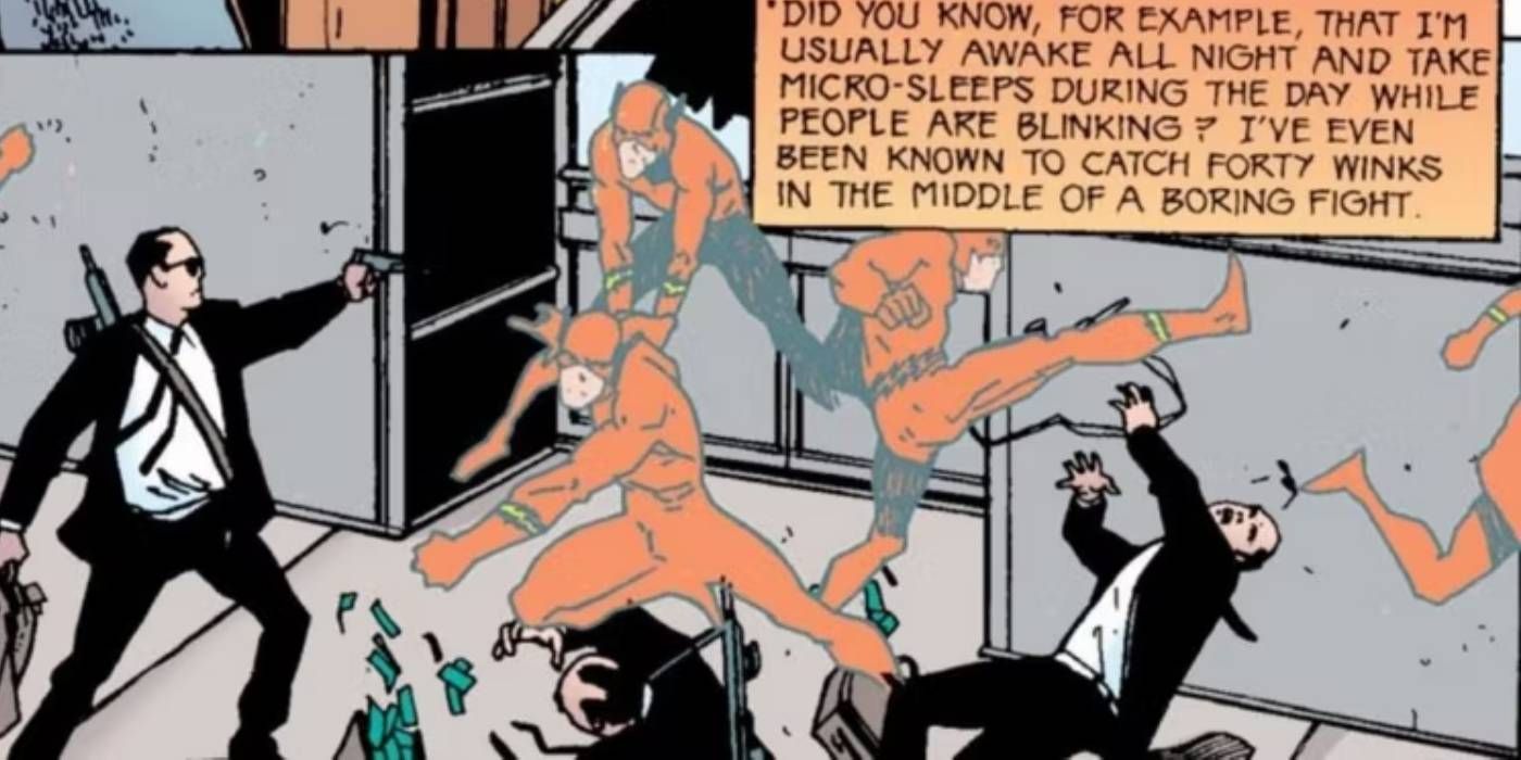 En los cómics, Flash siempre está alerta y bien descansado gracias a su inclinación por tomar microsiestas frecuentes. Incluso aprovecha la oportunidad para dormir un poco en medio de peleas contra personas que no son velocistas, delincuentes normales que ni siquiera representan una amenaza suficiente para permanecer despierto todo el tiempo. Barry puede dormir tan rápido que puede tomar una siesta en el transcurso de un picosegundo, o una billonésima de segundo, obteniendo el equivalente a 8 horas completas en el tiempo que le toma a una persona normal parpadear.