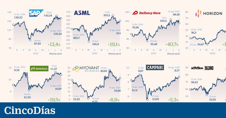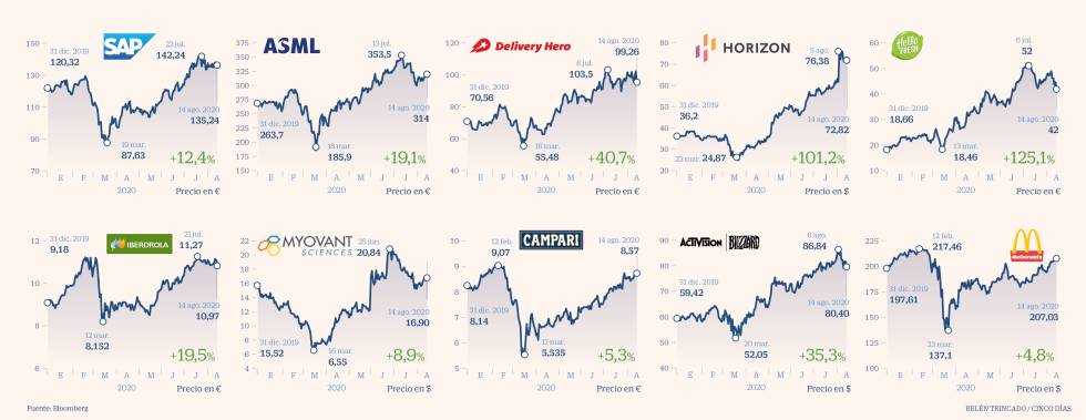 Son tiempos de buscar lo exclusivo, lo que nadie hace y a las compañías con un nicho de mercado al que muy pocas pueden acceder. Este es el caso de la firma tecnológica holandesa ASML Holding, que en el año acumula una revalorización del 18%. Juan Tuesta, analista de Bankinter, destaca que esta compañía se dedica a la fabricación de las máquinas que luego utilizan los productores de semiconductores. Cuentan con una tecnología propia y son líderes en su categoría. “Aunque temporalmente se vio afectada por el Covid-19 y tocó los 185,90 euros por acción (hoy en torno a los 314 euros) opera en el sector tecnológico que es hoy por hoy refugio, cuando el inversor ha huido de sectores cíclicos más tradicionales”. Este experto destaca el auge del teletrabajo o del comercio electrónico como factores que impulsan a esta compañía, “porque detrás de todo hay semiconductores”. Por último, considera que es muy complicado quitarle cuota de mercado y espera unos crecimientos de doble dígito para el conjunto del año.