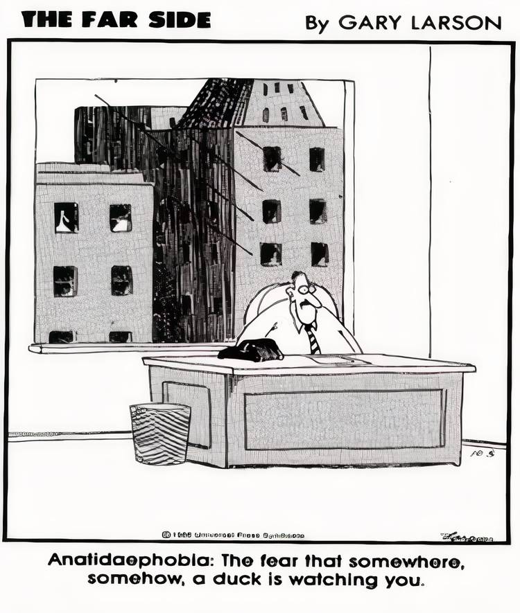 Un hombre está sentado detrás de su escritorio en su oficina, paralizado por el miedo. En el edificio contiguo al suyo, un pato mira por la ventana y lo observa desde lejos. Los peores temores del hombre se han hecho realidad, ya que sufre de anatidaefobia, que es el miedo a que, de alguna manera, en algún lugar, un pato esté siempre vigilándolo. Por supuesto, la anatidaefobia no es una condición real (como se categoriza/reconoce en el DSM-5-TR), pero eso es sólo en el mundo real. En El otro ladola anatidaefobia es muy real y este hombre tiene razón en tener miedo.