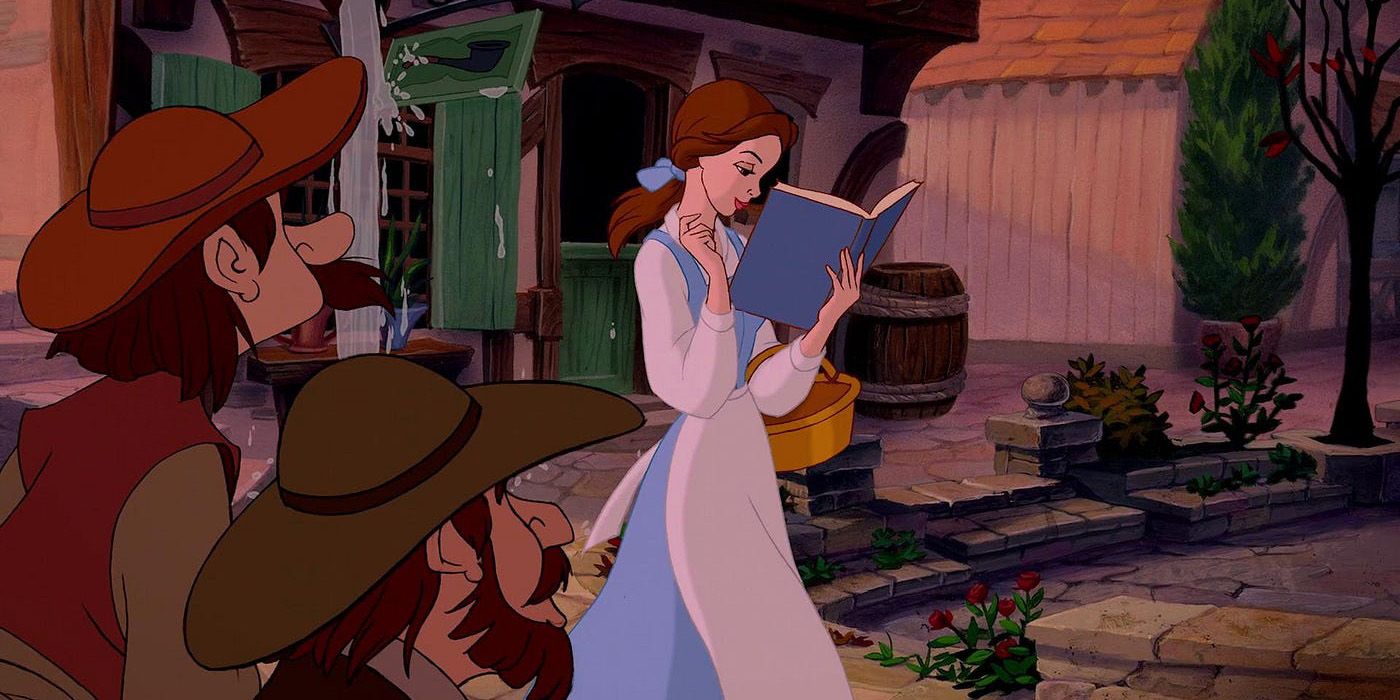 “/> Durante “Bella”, La propia Bella camina a través de ella. “pequeña ciudad de provincias” mientras lee un libro, completamente ajena al hecho de que todos cantan acerca de que ella es una persona extraña. Si bien habla con su padre sobre lo que la gente del pueblo dice sobre ella en la siguiente escena, no parece darse cuenta ni importarle durante este número musical inicial. Cuando la canción llega a su fin, Bell se da vuelta por un momento como si acabara de notar el coro completo detrás de ella. Un buen libro puede hacer desaparecer el mundo.
