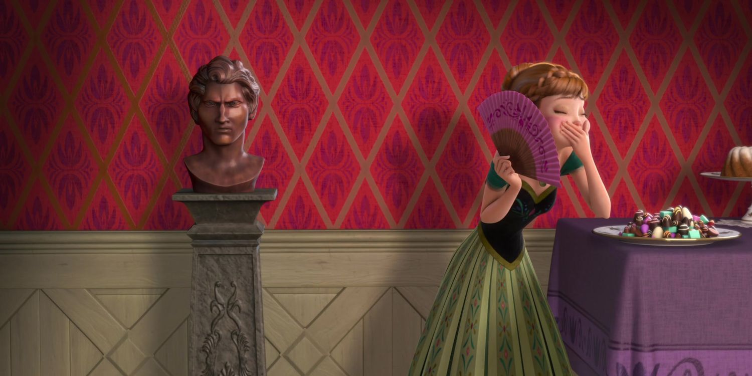 “/> Anna hace lo más identificable del mundo cuando se imagina conocer a alguien que la pone nerviosa: atiborrarse de los dulces disponibles más cercanos. A Elsa y Anna les gusta el chocolate y tienen su primer momento de unión en años al comentar sobre el increíble olor que flota en el palacio. Mientras Las princesas de Disney podrían haberse vuelto más identificables en un sentido general en los últimos años, algo tan simple como el amor por el chocolate ayuda a los espectadores a ver a una princesa ficticia como una persona real.