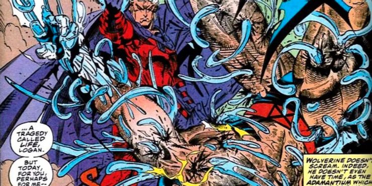 Magneto regresa a la villanía de manera importante a principios de la década de 1990, después de pasar gran parte de la década de 1980 como un héroe reformado. Le da a los X-Men una pérdida brutal en Atracciones fatalescoronando su crueldad arrancando todo el adamantium del cuerpo de Wolverine.