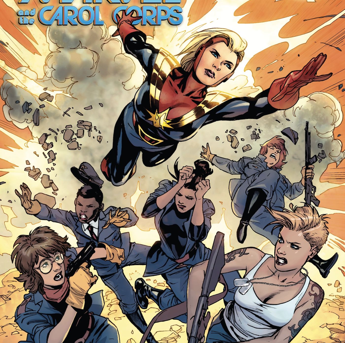 “Más alto. Más lejos. Más rápido. Juntos”. Carol Corps del Capitán Marvel, también presentado en Vengadores para siempre #10, continúa la misma tendencia de Tony Starks Anonymous con un grupo súper multiverso de Captain Marvels. Unida por la amenaza de Black Skull y sus Masters of Evil, Carol Danvers se une a un gran conglomerado de variantes, todas con las mismas habilidades que ella. Este equipo está dirigido por una variante de Carol Danvers que era esclava de los gobernantes de su Tierra, el Hellfire Club. Después de años de tormento y sin poder usar sus poderes, esta versión endurecida de Carol está más que agradecida de ver un ejército de héroes que comparten sus dones. La cantidad de daño cósmico que estos capitanes pueden desatar sobre cualquier amenaza es prácticamente ilimitada. Ahora, con un renovado sentido de propósito, Carol se une a un equipo de amigables detectives, cyborgs y guerreros que ayudan a acabar con el Hellfire Club y se unen a la épica lucha contra los Multiverse Masters of Evil.