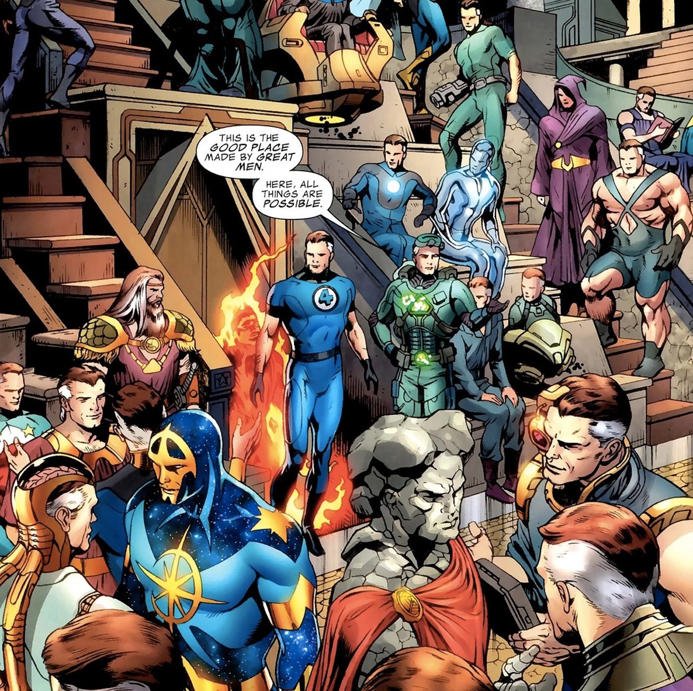 La reunión definitiva de los hombres más inteligentes del multiverso, el El Consejo Interdimensional de Juncos es un club exclusivo formado por las variantes más inteligentes de Mr. Fantastic que trabajan juntas para resolver problemas a nivel multiverso. El consejo, debutando en 2009 Cuatro Fantásticos #570 por Jonathan Hickman y Dale Eaglesham, originalmente consta de tres variantes de Reed Richards que tienen sus propios Infinity Gauntlets. Con el poder ilimitado de las Infinity Gems, los tres Reed reúnen al resto de sus contrapartes de todo el multiverso y se esfuerzan por arreglar el multiverso a su manera. Aunque los Reed tienen que lidiar con dejar atrás sus mundos y familias, llegan a un compromiso utilizando insignias de clonación especiales para dejar duplicados en sus universos de origen. Aunque es un equipo divisivo dentro del Universo Marvel, el Consejo de Reeds está a la altura de su reputación como el equipo más inteligente del multiverso.