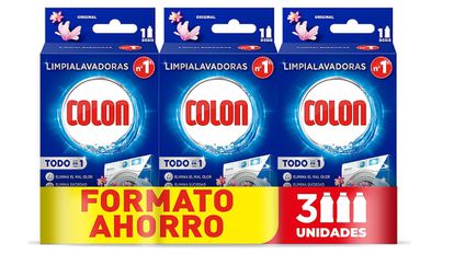Trucos para limpiar la lavadora por dentro hay muchos, pero productos eficaces no tantos. En EL PAÍS Escaparate nos hemos decantado por este limpiador de la marca Colon. Viene en un kit de tres recipientes con triple acción: elimina el mal olor, limpia las partes internas y protege la lavadora. Sin olvidar del extra de frescor que proporciona. Su fórmula es biodegradable y se debe usar una vez al mes en un ciclo vacío sin detergente ni ropa.