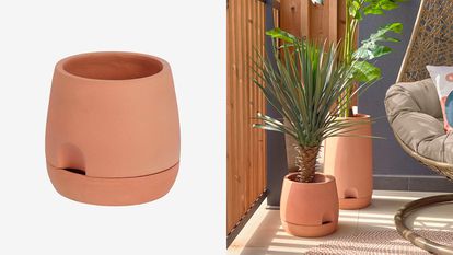 Esta maceta de Kave Home se llama Luigina y está elaborada con terracota. Tiene un diámetro de 27 cm. y, gracias a su material, retiene el agua necesaria, absorbe la que no lo es y la transpira. El depósito de agua se separa de la maceta de forma sencilla y, por su diseño, se adapta tanto a interiores como a exteriores.