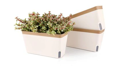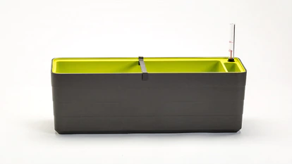 También indicada para exteriores, esta jardinera ofrece un diseño moderno y sofisticado en dos colores. Dispone de un gran depósito (de 4 litros) y un indicador de nivel adicional. Su material resiste los climas extremos y los rayos UV.