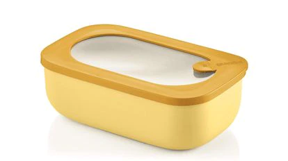 La peculiaridad de este recipiente es que, a diferencia de otros modelos, en su mayor parte no es transparente al estar fabricado en polipropileno. Y aunque se encuentre dividido en dos niveles, cuenta con un gran espacio inferior de 500 ml. En cambio, el compartimento superior es de 200 ml. Es un producto muy ligero, apto para el microondas y se puede desenroscar con simple movimiento de la mano, abriéndose ambas partes por separado de forma estanca.